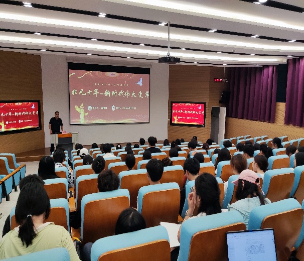 接着阐述“新时代十年伟大的变革与成就”。徐绍埔老师通过鲜活案例与详实数据,全面梳理新时代十年的辉煌成就。他表示,十年间,党和国家在经济发展、科技创新、生态环保、民生保障、国家安全等领域推出一系列重大举措,解决了许多长期想解决而未解决的难题,让国家综合实力显著提升,人民幸福感、获得感、安全感持续增强。