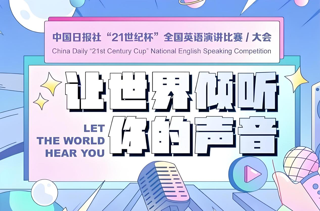“21世纪杯”全国英语演讲比赛高举习近平新时代中国特色社会主义思想伟大旗帜,全面贯彻落实党的二十大精神,为提高中国青年讲好中国故事的能力水平,为加强我国国际传播能力建设、促进文明交流互鉴、推动构建人类命运共同体凝聚青春力量。