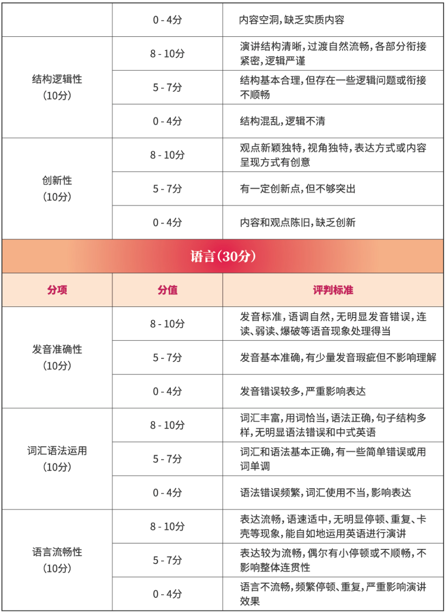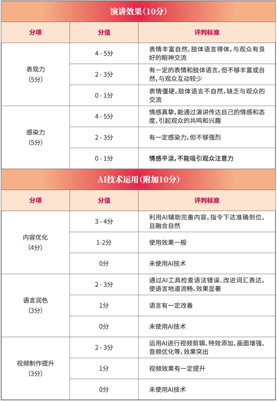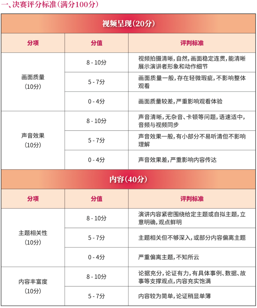 比赛内容:比赛分为现场演讲、评委提问两个环节。