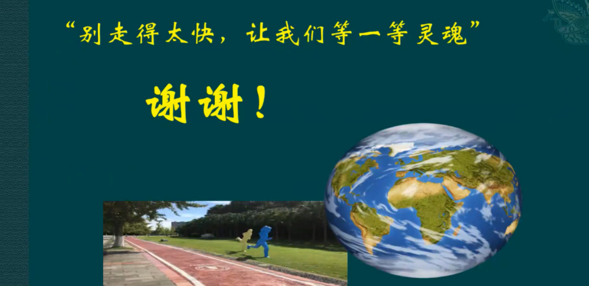 讲座尾声,石教授分享了一句话“别走得太快,让我们等一等灵魂”。