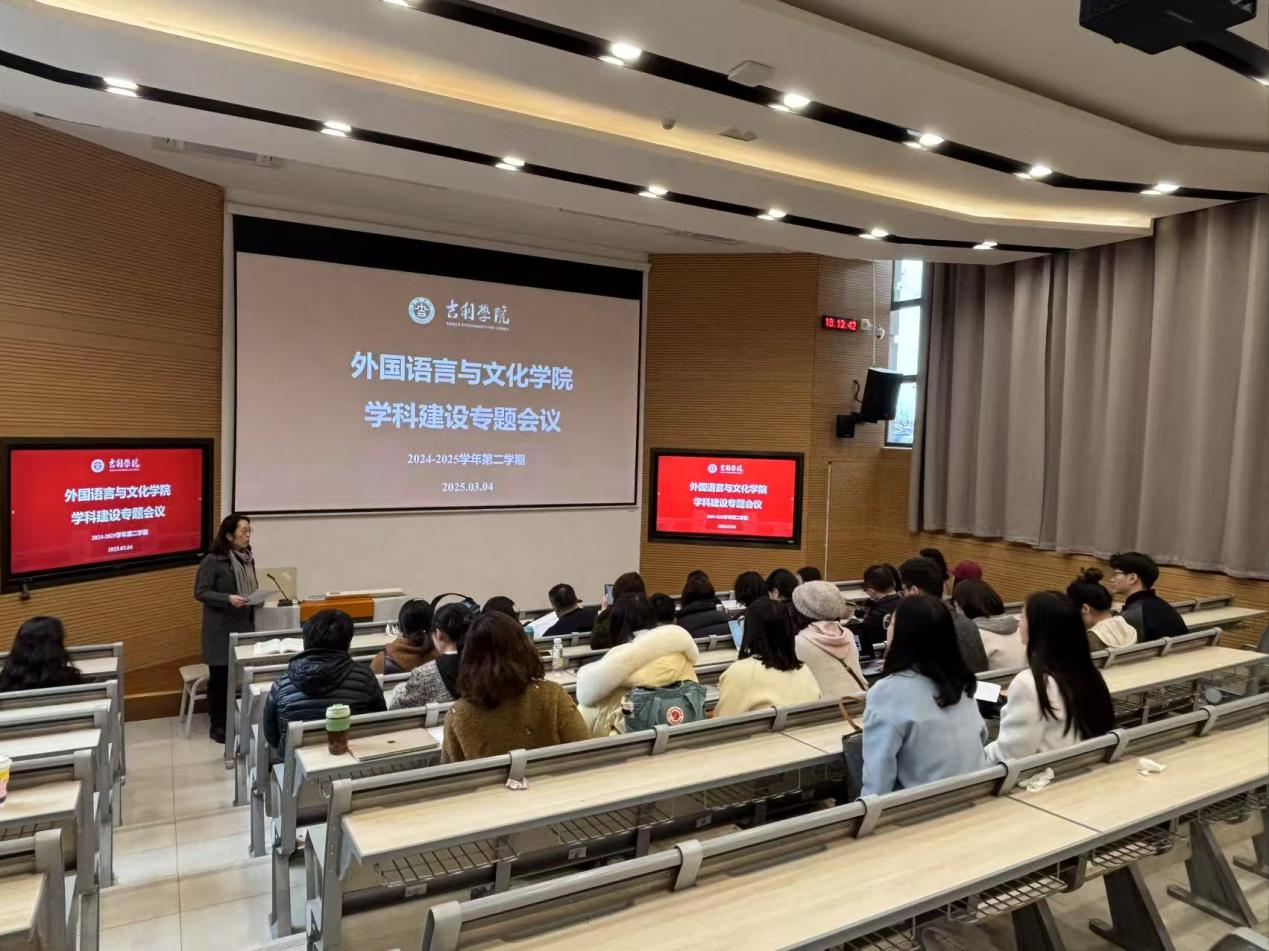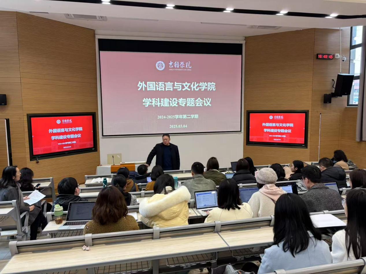 2025年3月4日下午,外国语言与文化学院于立德楼166教室召开学科建设专项建设工作推进会。学院班子全体领导、学科带头人、学科方向带头人、学科团队全体骨干教师;英语教研室负责人;翻译申硕中心全体工作人员全体成员参会。会议由李萍副院长主持。