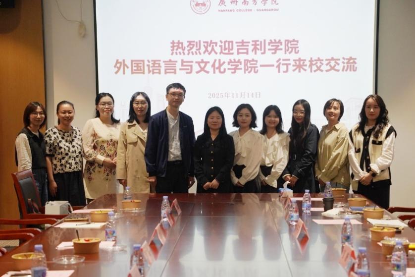 为进一步加强与兄弟院校的交流与合作、借鉴其在外语类学科建设方面的宝贵经验和成功做法,2025年11月14日,吉利学院外国语言与文化学院副院长李春兰副院长带领马舒、付倩、李佳桔、林秋月、刘菲菲5位青年老师前往广州南方学院,进行省级一流本科课程、省级本科高校课程思政改革示范课程、大学外语教学体系建设与改革、学生竞赛、大学英语四六级考试、考研升学培训等交流学习活动。