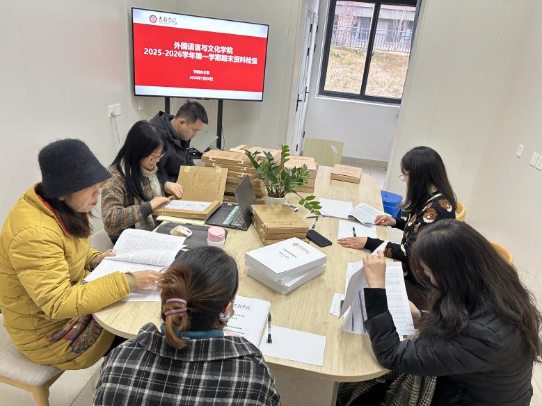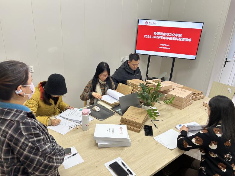 为迎接2026年学校评估,进一步规范教学管理、提升教学质量,外国语言与文化学院自2026年1月12日组织开展学期末教学资料系统检查工作,并于1月20日成功举行本年度第一次评估实战演练。两项工作紧密结合、有序推进,为学院后续迎评促建打下坚实基础。