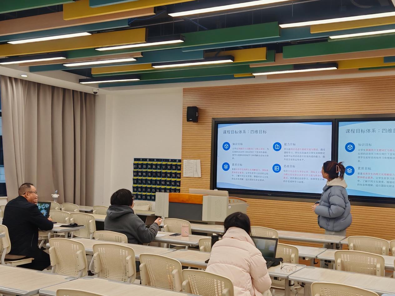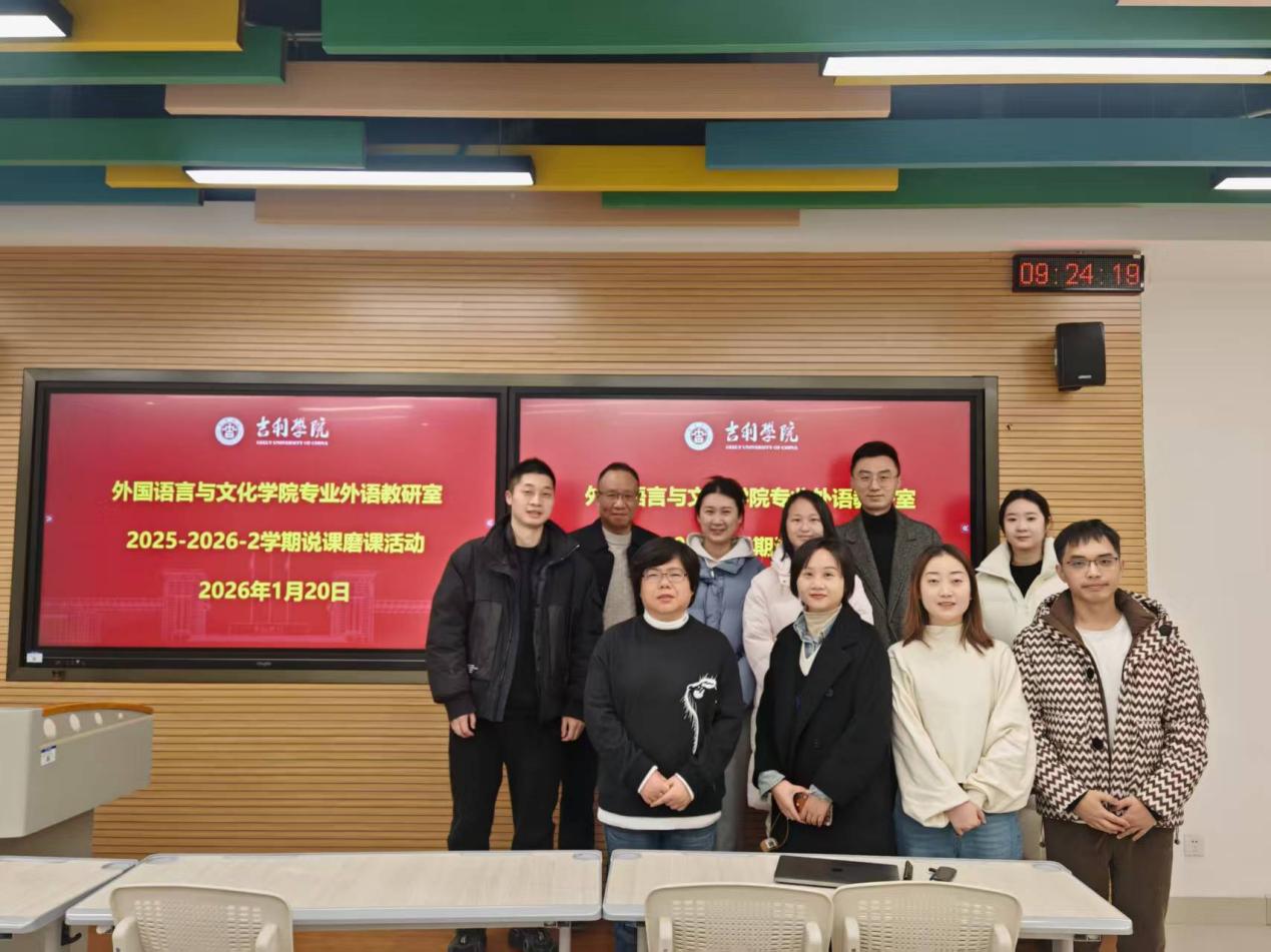 为扎实推进本科教学工作合格评估迎评准备,落实学校 “以评促建” 工作要求,通过优化教学设计、提升课堂实效全面强化教师教学能力,1 月 20 日上午,专业外语教研室严格遵照教字〔2026〕8 号文件部署,成功组织开展 2025-2026 学年第二学期 “说课”“磨课” 专项活动。本次活动共有 24 名说课教师、5 名磨课教师全员参与,金黛莱、谢锦、陈顺江、乔蓓等资深教师担任评委,活动在 L253、L255 等指定场地有序推进。