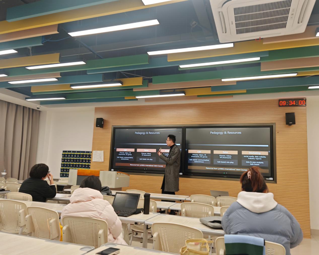 24 名说课教师围绕所授课程,从课程定位与目标、教材与数字化资源、教学内容与课程思政等七大核心维度,系统呈现教学设计思路。党熹老师在《高级英语(2)》说课中,以 Unit 4 Diogenes and Alexander 为载体,清晰界定课程在英语专业人才培养中的核心功能,深入阐述跨文化素养与批判性思维的培养路径;刘倩老师针对《第二外语 (2)(法语)》课程,精准分析不同层次学生的知识储备与学习需求差异,设计了兼具基础性与拓展性的分层教学策略;蒋旭光老师的《汽车知识产权法英语》则紧扣行业需求,将专业术语教学与法治意识、工匠精神培育有机融合,展现了专业外语“学科融合、知行合一”的教学特色。