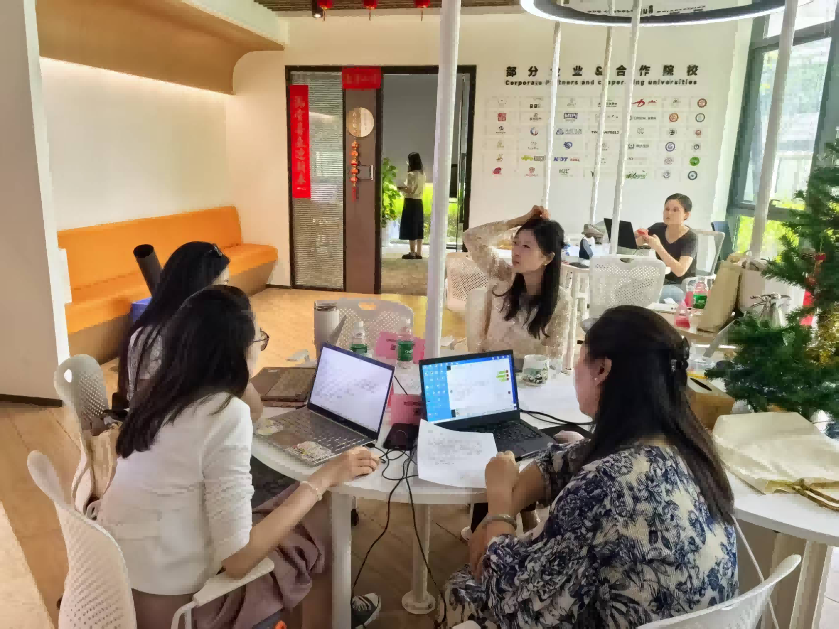 金老师与邹教授针对当前合作项目的验收、人数核对、盖章等工作进行了细致讨论。