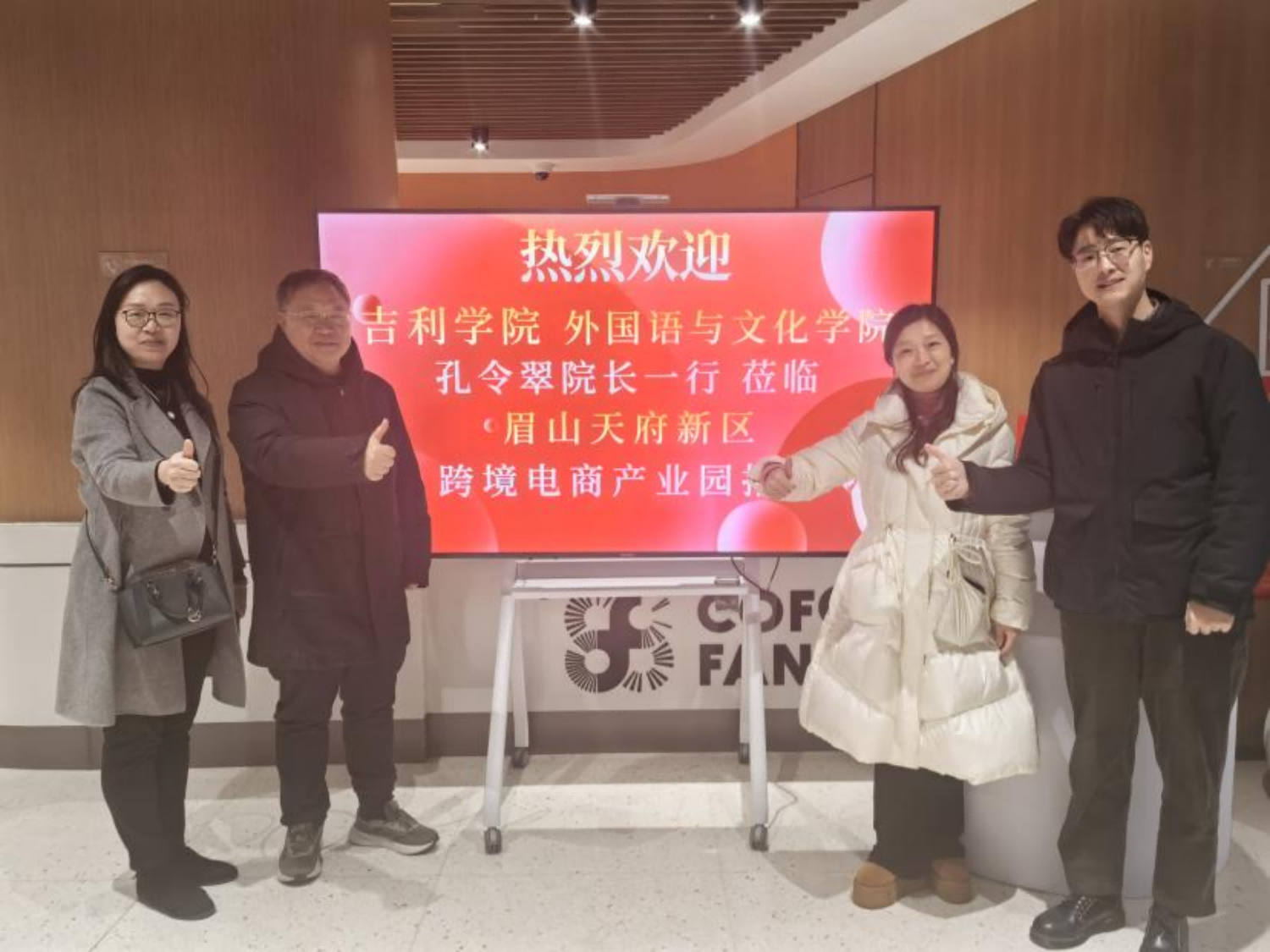 为进一步深化产教融合、提升校企合作协同育人成效,促进毕业生高质量就业,2024年12月14日,吉利学院外国语言与文化学院院长孔令翠教授带队赴眉山天府新区跨境电商产业园开展调研交流暨访企拓岗活动。学院英语专业教师谢锦教授、彭地老师和学院办公室金川杰老师参加了本次调研活动。