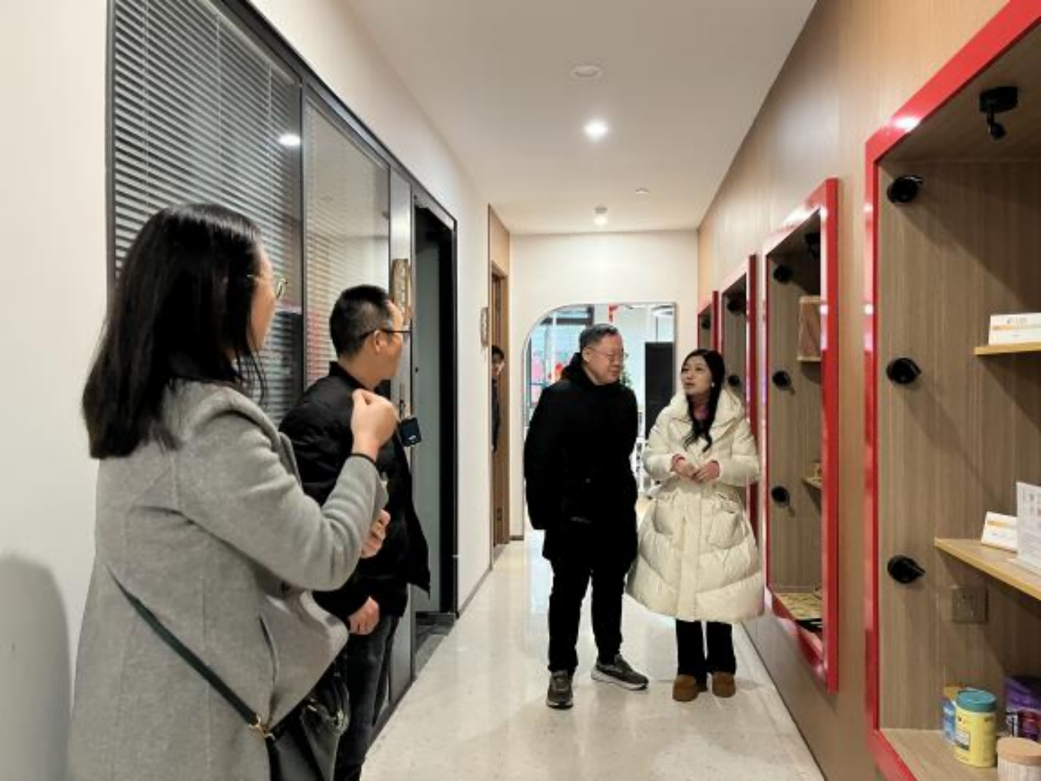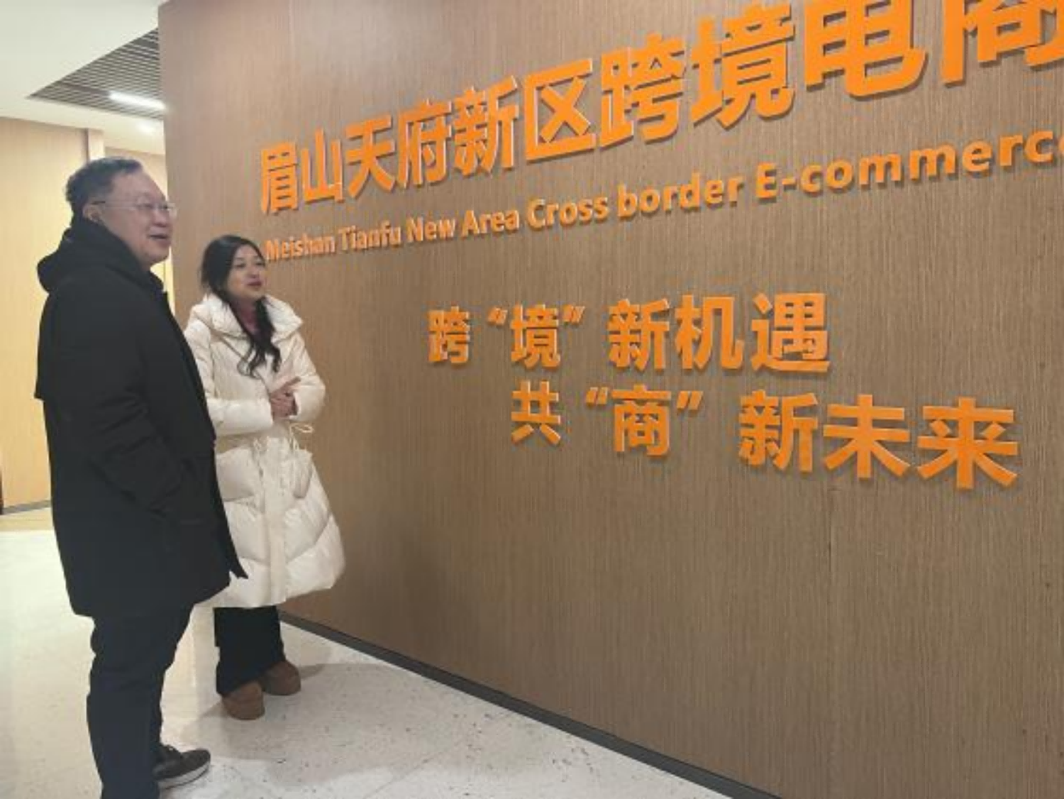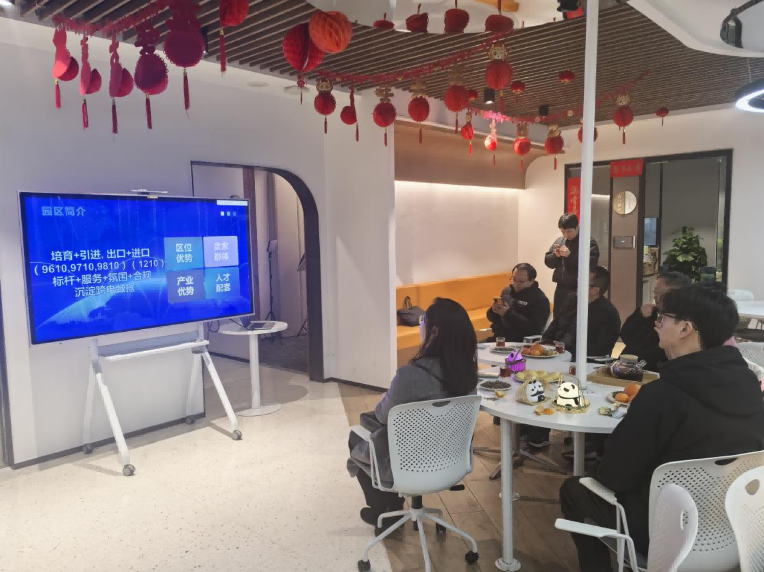眉山天府新区跨境电商产业园运营负责人邹松热情接待了我院参观人员。在其陪同下,孔院长一行参观了天府新区眉山跨境电商产业园的多家驻园企业、园区大厅、直播间、展示区、会议室等区域。该园区是中国(眉山)跨境电子商务综合试验区的重要组成部分,旨在帮助企业搭建外贸平台,打通全球通的贸易通道。园区设有进出口电商产品展示、跨境电商培训、跨境直播带货、创客空间等7大功能区,通过政府、开放、运营、合作、服务5大平台相互赋能,全方位助企业健康成长。园区运营负责人邹松向大家详细介绍了园区的区域优势、整体布局和功能、入住条件、人才需求以及平台建设等情况。