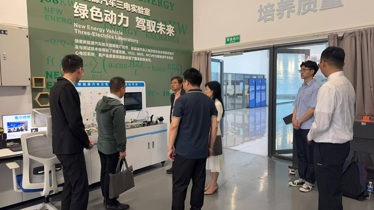 在此之后,参访嘉宾一行前往新能源汽车三电实验室实地考察,并与刘铁教授就车规级芯片、自动驾驶系统等关键技术话题展开热烈讨论,进一步加深了对吉利学院在新能源与智能汽车研发领域整体布局的了解。