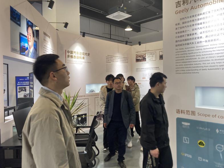 杨畅老师为巴中职业技术学院师生代表团讲解了中国汽车近现代史多模态语料库和吉利汽车发展史语料库。中国汽车近现代史多模态语料库以多维视角展现了中国汽车从艰难起步到蓬勃发展的历程,而吉利汽车发展史语料库则详细记录了吉利汽车集团从技术研发到国际化布局的重大事件。杨畅老师的介绍让大家对中国汽车,尤其是吉利汽车的发展有了更直观的认识,见证了中国汽车产业的崛起之路。
