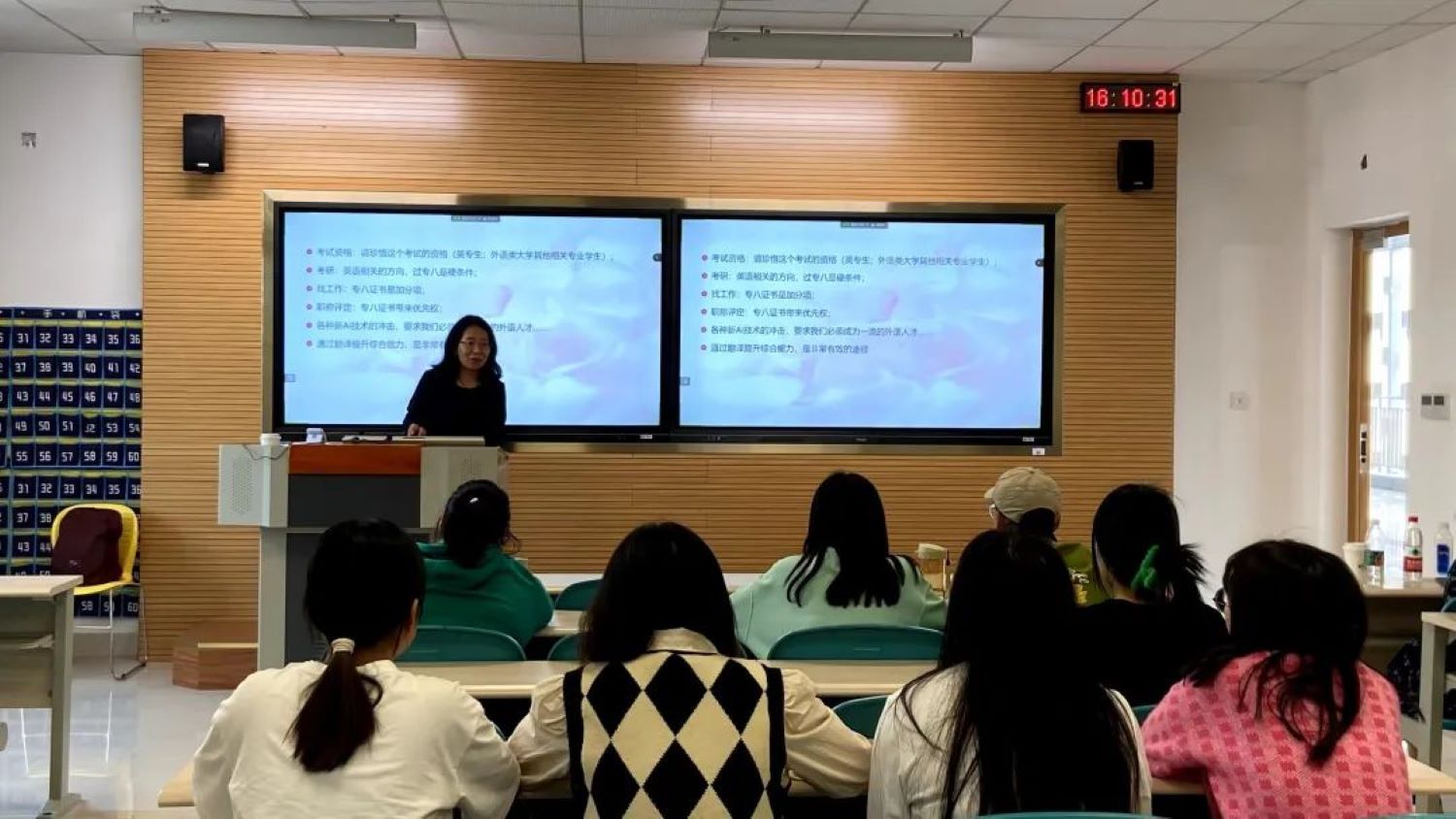 他说道:专四、专八考试是衡量英专学子专业水平的国家级统一测试,是英专学子进入未来职场的敲门砖,我院英专学子们应该重视并对自己大学四年的学习生涯有全面的、前瞻性的规划。即使曾经高考英语成绩不理想,也可以通过四年的学习来提升英语专业知识,补足自己和一流高校英专学子的差距。在互联网2.0时代,信息壁垒已被打破,各院校的学子们都是在同台竞技,为了能够在将来的求职生涯中崭露头角、脱颖而出,我院英专学子不仅应该要强化应试技巧,还应该拓展自己的专业资格认证,比如把CATTI翻译考试与专四、专八考试一起同时提上日程,强化自身专业素养。