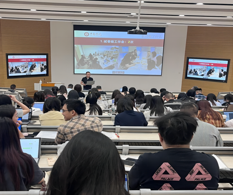 首先,学校教学督导郑教授讲话。他从教学规范与教学评估两方面,通报了老师们现阶段学院教学资料评估检查情况,强调老师自主整改检查教学材料、教学大纲中问题多的部分,并提出针对于教学材料论文指导检查,教研室应审查教学资料无误后签字等要求。除此之外,他提出教师在日常上课时应加强教学课堂检查管理工作。