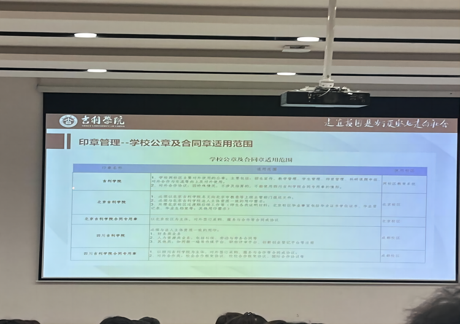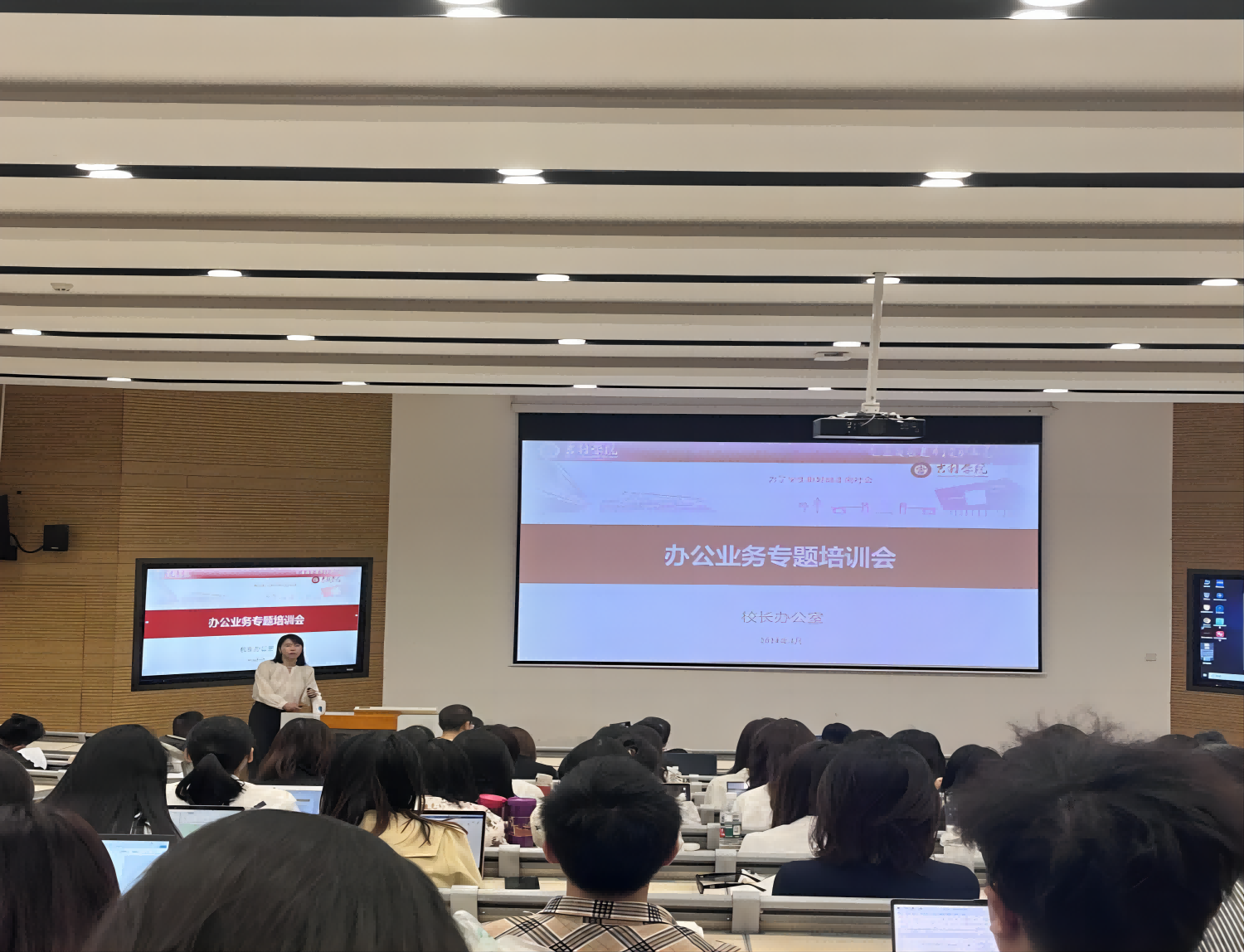 会上、成雯副主任针对办公业务专题进行培训。主要包括印章管理、合同施印、公务出差操作指引等。对于印章管理过程中常见问题她进行讲解。