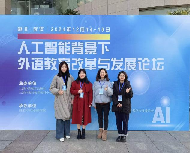 在“十四五”教育高质量发展的关键时期,随着人工智能技术的迅猛发展,尤其是 AIGC 时代的全面到来,教育领域正经历深刻变革。人工智能与语料库等信息技术已成为推动教育创新的核心力量,外语教育也迎来了前所未有的机遇与挑战。在此背景下,2024 年 12 月 15 日,人工智能背景下外语教育改革与发展论坛在湖北大学举办,我校外国语言与文化学院马瑶、何曼、李佳桔、唐俞环四位老师参加了会议,探索外语教育在人工智能浪潮下的变革与创新。