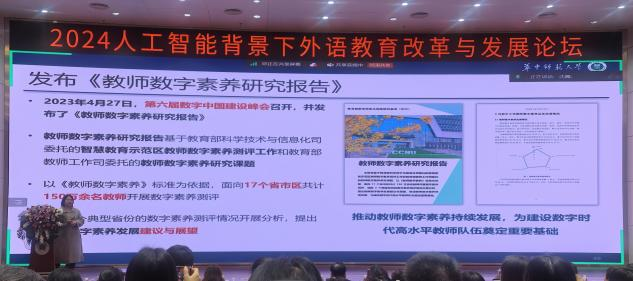华中师范大学陈敏副教授聚焦教师数字素养提升,详细解读了智能时代教育变革下教师数字素养的内涵、评价体系,并结合实例展示提升路径。在如今数字化教学工具广泛应用的课堂中,教师需要熟练掌握如在线教学平台的操作、智能教学软件的使用等数字技能,才能更好地组织教学活动。她的讲解为外语教师适应新技术环境提供了全面的指引。