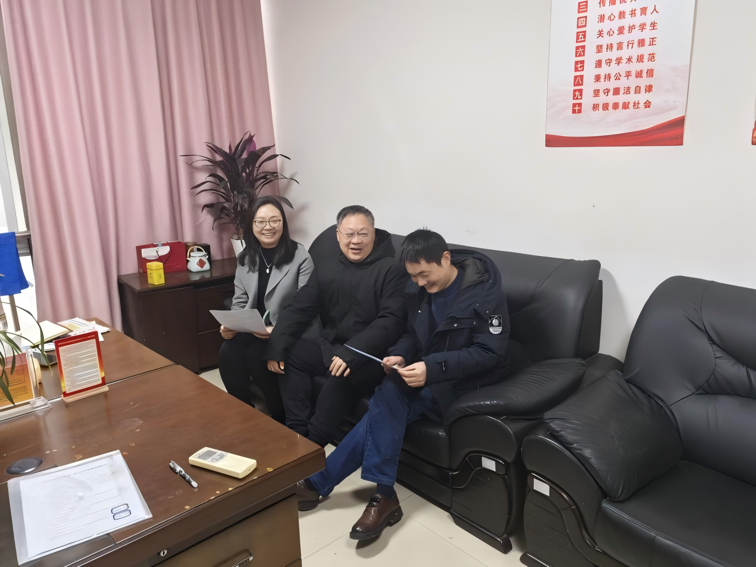 座谈中,孔院长向傅部长和翁主任详细介绍了吉利学院近年来致力于建立制度供给充分、条件保障有力的职普融通良好生态,构建资源共享、优势互补的校企协同育人模式的多项举措。孔院长表示,作为行业特色高校,我们应主动加强与职业教育的对接。希望通过此次调研,能了解高职学生成长发展新诉求,探寻破解产教融而不合、校企合作不深不实的难点堵点问题的解决方法,促进高职教育与本科教育的有机衔接。