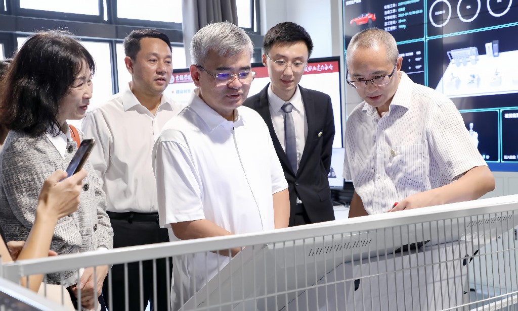 几位外宾乘坐校内观光车,在校领导陪同下来到汽车工程实验实训中心。冯源老师负责了本次汽车工程实训中心1楼与负1楼各专业实验室与展厅的全英文讲解与产业定位,吉利学院背靠吉利集团的大力支持,学院各个方向的办学与科研与汽车和电子信息两大万亿产业的紧密联系。然后,冯老师配合实训中心的智慧大屏,向外宾介绍了吉利学院规模宏大的一网三系统实验室集群规划:拥有海量算力的超算中心;天地一体化高精度时间频率实验室群;800V电子电气架构智能新能源汽车实验室群;醇电智能汽车实验室群;工业互联网实验室群;金融科技研究中心;汽车元宇宙实验室群。配合PPT和实体模型的讲解,外宾们听得兴趣盎然。