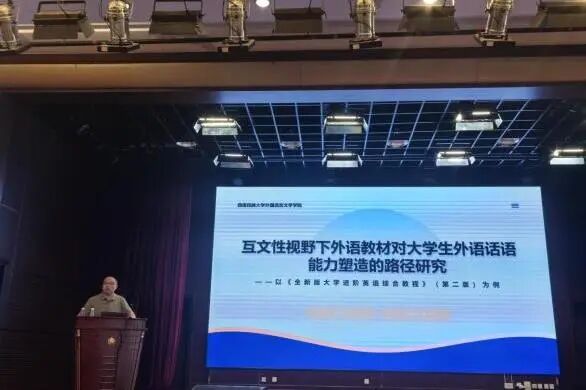 西南民族大学邓忠副院长以《全新版大学进阶英语综合教程》(第二版)为例,探讨了外语教材如何通过互文性设计塑造学生的话语能力。他提出,教材应从“课堂教学素材”升级为“人才培养剧本”,教师需在教学设计中融入社会情境与话语实践,培养学生的批判性思维。西南交通大学贾番副教授则从学术研究角度,分享了外语教材论文写作的审稿标准与未来研究方向,为教师科研能力提升提供了实用指导。云南民族大学刘云云老师的示范课《Pioneers of Flight》生动展示了AI技术在外语课堂中的应用,通过智能工具实现互动教学,激发学生兴趣。