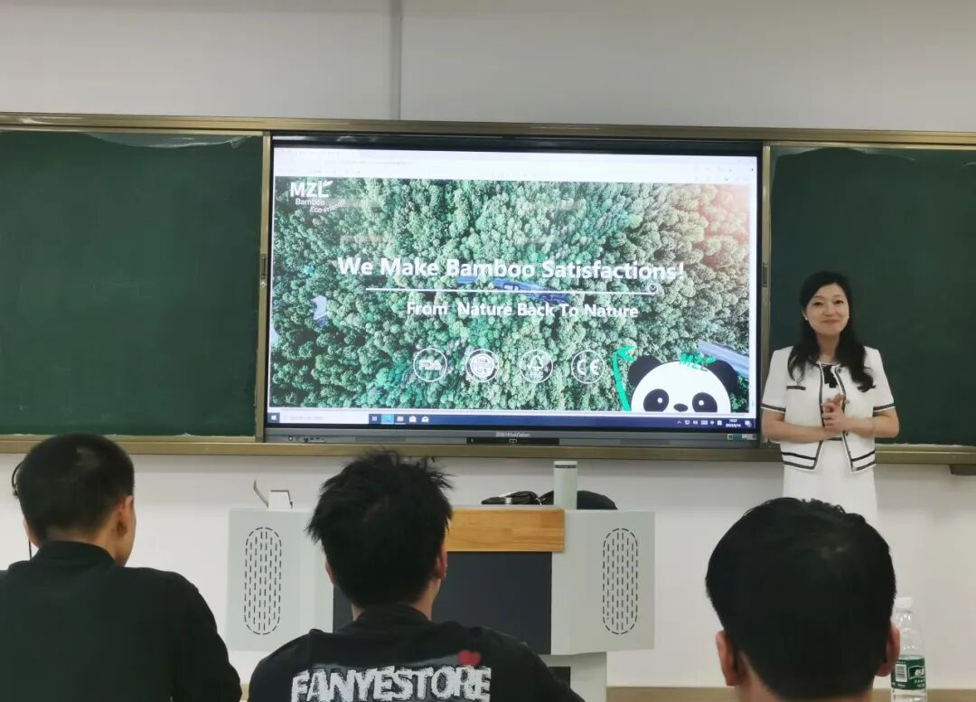 随后,邹松老师向同学们介绍“青神”竹艺品IP,她一直秉承“青神遇见、满竹盛宴”的人文发展理念,严于律己,不断创新,在四川及全国优势产业带拓展了诸多核心伙伴,并带领218位学生开展100+创新创业活动,以跨境电商+青神竹编+创新创业模式,赋能特色产业,促进乡村振兴。