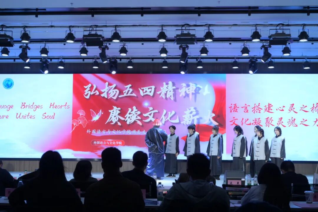 随着一部学生精心演绎的洋务运动小短片,外国语言与文化的答辩开始了。小短剧以别出心裁的方式展现英语在近代中国的关键作用。演员们生动诠释历史场景,凸显英语作为沟通桥梁,对引进西方先进技术、推动社会变革的重要性,让观众深刻理解语言学习的时代价值,彰显学院将历史文化与语言教学深度融合的创新思路。同时学子们在答辩的短片视频中全方位展示了各部门学生风采,画面中,几大部门学生会展示着学习成果,在过去的时间里,她们付出汗水也收获累累硕果,将青春的活力抛洒整个会场。