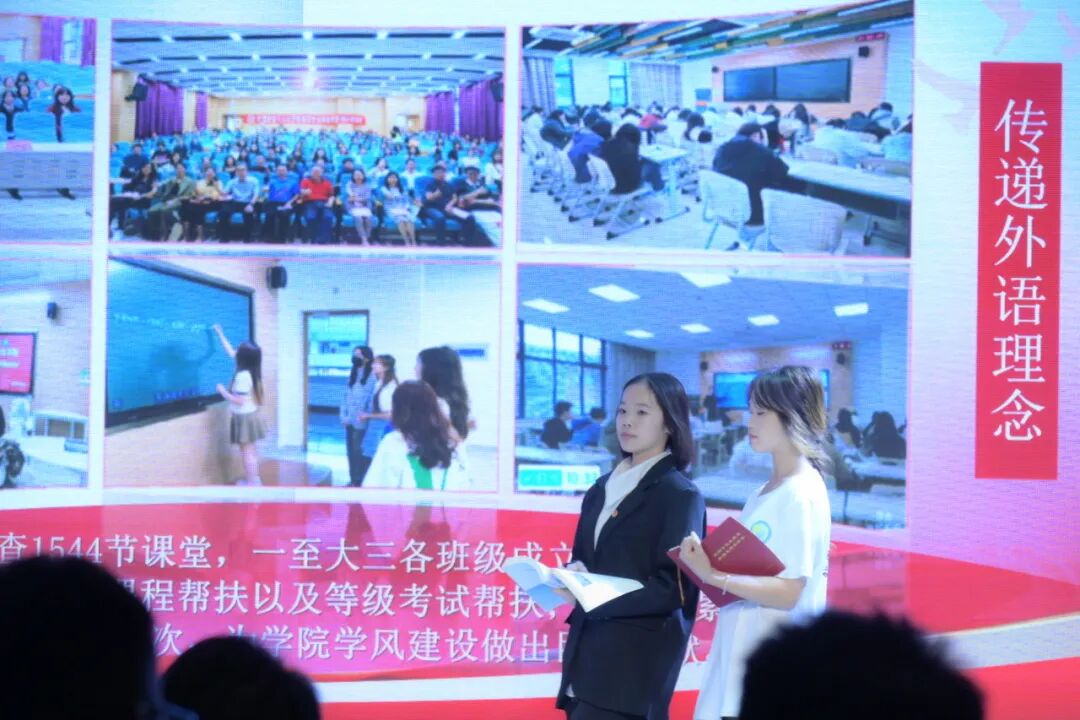 学院重点介绍四大领域的成果:组织建设上,优化社团管理体系,让外语类社团成为学生锻炼能力的优质平台;学工建设中,老师们认真教学,为学生提供支持与帮助;志愿服务方面,多次进行志愿服务,帮助学生在校外学到更多;学风建设成效显著,专四专八率可观,学生在外语竞赛中屡获大奖。这场答辩不仅是学院过往成就的总结,更预示着未来蓬勃发展的良好态势 。